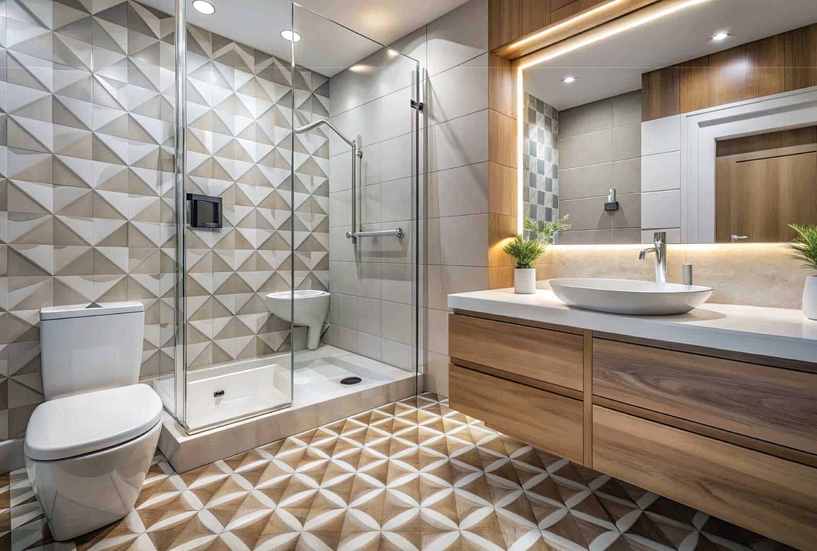 Digital shower controls, motion-sensor faucets, and WaterSense-certified fixtures combine technology with water conservation—important for desert homeowners.